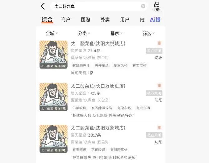 据极目新闻报道,16日,记者在大众点评上搜索发现,沈阳的太二酸菜鱼门店均显示已经歇业关闭,有的门店电话处于关机状态,有的门店主页已删除联系电话。