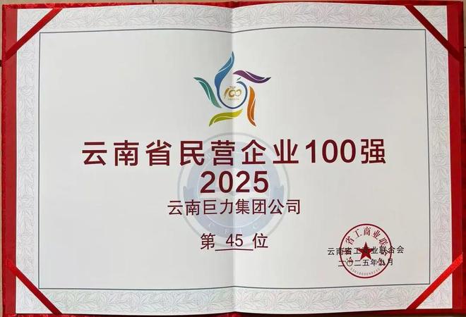 九载春秋,初心不改;九次登榜,步步铿锵。这不仅是一串数字的累积,更是云南巨力集团以实干为笔、以创新为墨,在时代画卷上镌刻下的厚重印记。从产业布局到技术革新,从市场拓展到社会责任,云南巨力集团始终秉持“巨流竞舸,力争上游”的精神内核,坚守“立民族志气,铸产业脊梁”的使命担当,在风云激荡的市场经济大潮中稳舵前行,成为推动云南高质量发展的中坚力量。