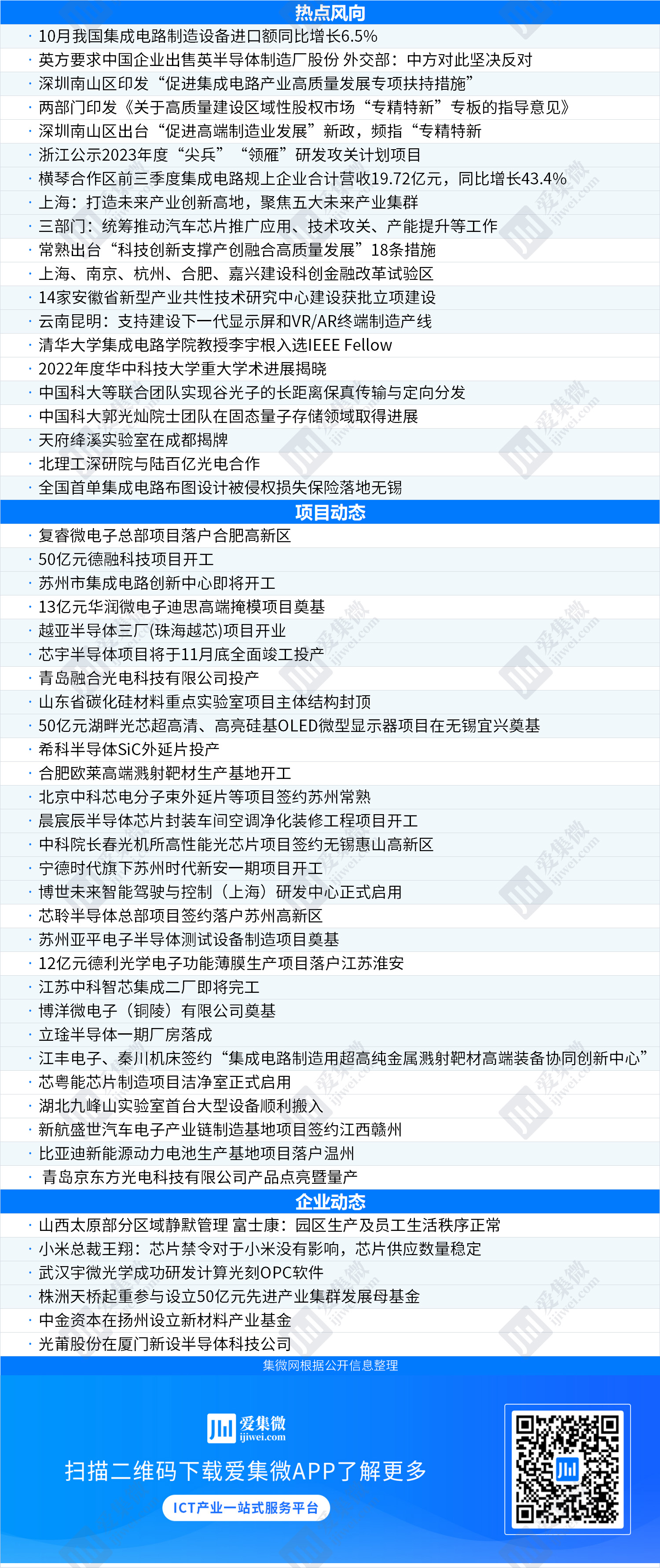 1.一周动态:深圳南山发布集成电路“新政”;珠海越芯、青岛京东方等项目“芯”动态